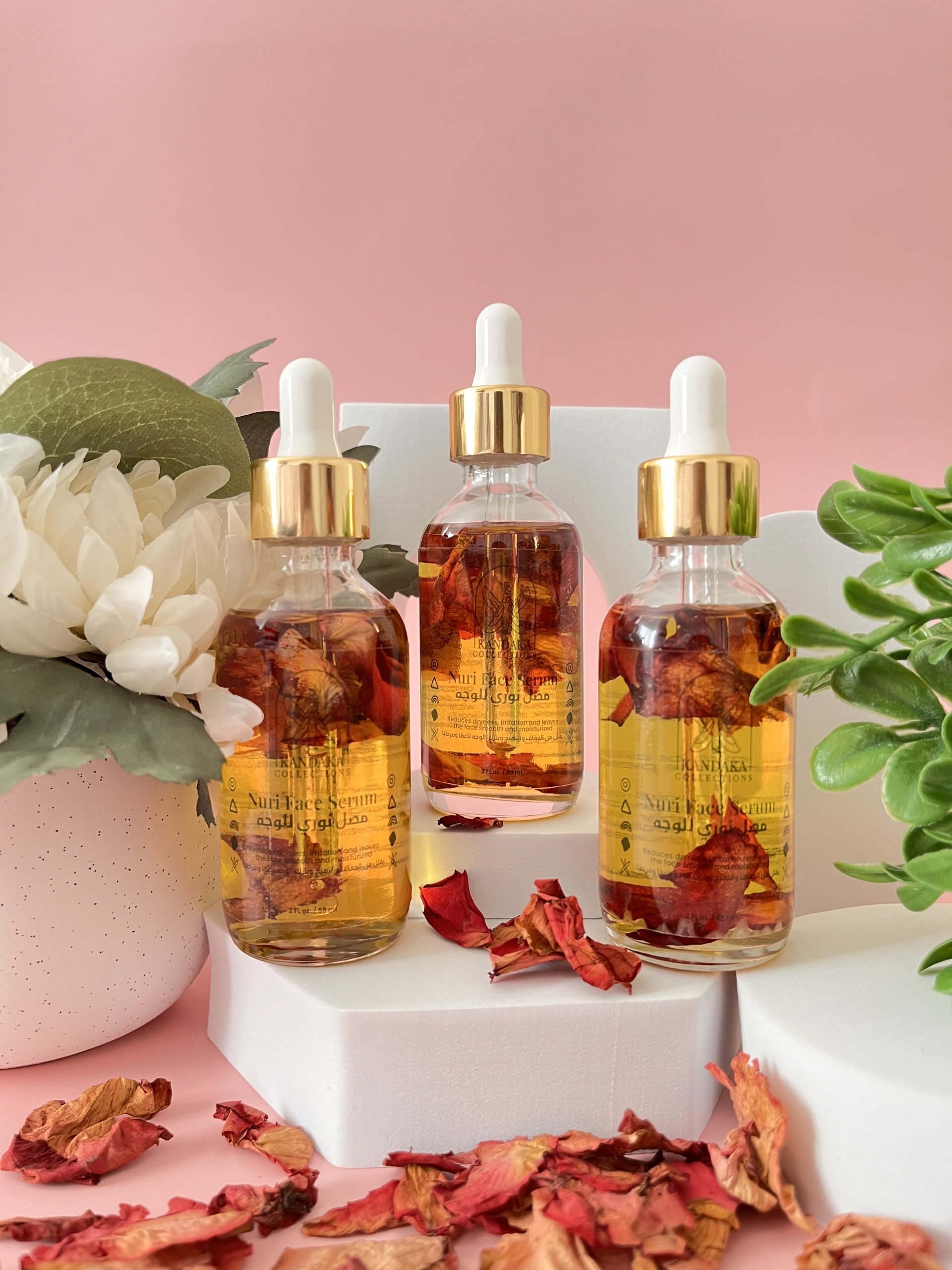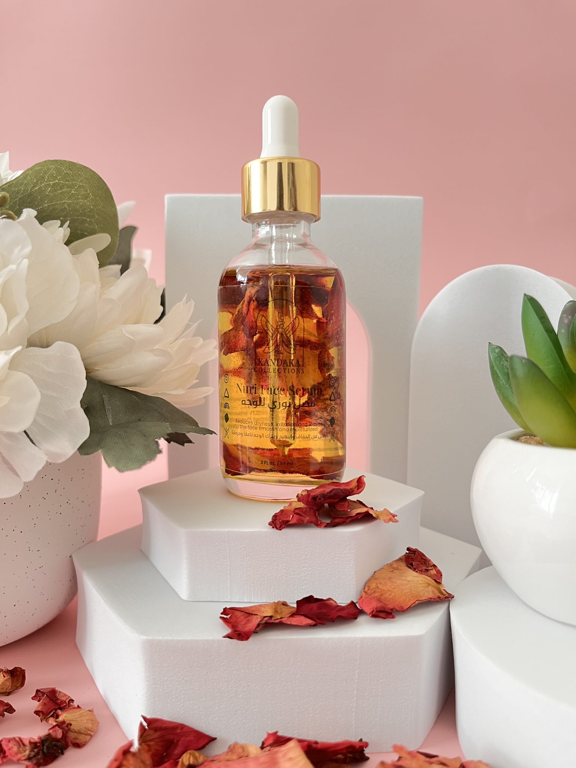 The Nuri Face Serum reduces dryness and irritation and leaves the face smooth and moisturized.